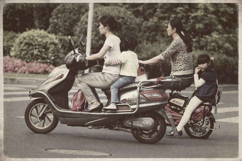 [caption id="attachment_593" align="aligncenter" width="1024" caption="safety first, or is it?"][/caption] It is strange after living in countries that put so much emphasis on traffic safety regulations, like the obligatory use of  helmets, children's safety, seat belts...etc, to live in Shanghai and witness the loose and almost too relaxed regulations for transportation. This is of course not too alien to me, having lived my first twenty years in Lebanon where everything goes, but I still get a shock each time I see a child riding the Shanghai traffic in this way. All is left to chance, good luck and to the faith that other drivers will be careful. But there has not been a week where I did not see at least one moped, motorcycle, bicycle or car accident in the streets of the city, so there must be something wrong with this picture!