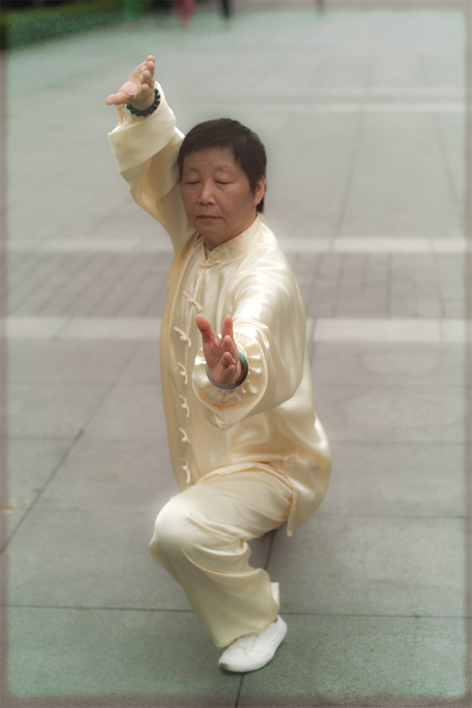 [caption id="attachment_624" align="aligncenter" width="682" caption="太极拳 Taijiquan~ Tai Chi"][/caption] 太极拳 Taijiquan or Tai Chi, is the internal martial art of China. It translates literally to "the supreme ultimate fist" and it is still to this day practiced daily and widely all over China. When you live in Shanghai like we do, you see Tai Chi being practiced on your street, in your garden, in the park, in the morning mostly but also at other times of the day. The most amazing thing about this is the level of concentration that the person performing their Tai Chi has. They appear to be completely engrossed in what they are doing and completely oblivious of the world moving fast around them. They maintain a very slow speed that completely defies the rush of the modern world and they achieve total bliss and a healthy glow because of it. It is almost as difficult as swimming against a strong current in a busy city of 18 million. This photo was taken at 7:30 am on a wide but buy street in Shanghai, where bikes, motorcycle, workers and life in general was rushing around this lady who practiced for over an hour unaffected. The greatest pity is that the new generation is abandoning this great ancient martial art and it remains in the custody of the elders.