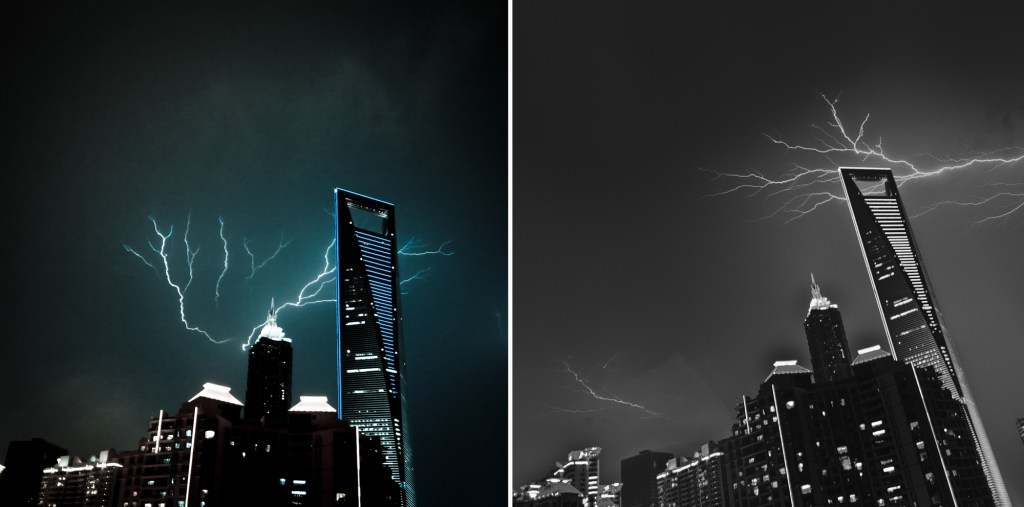 [caption id="attachment_718" align="aligncenter" width="1024" caption="electric!"][/caption] Shanghai summers are home for sudden and powerful electrical storms. Today we were at the pool for the first very hot day of the summer and at some point the storm arrived. I love how scientist try to explain this incredible phenomena without being able to agree on a single explanation. I spent the last hour surfing the science pages and reading about the subject only to be convinced that they cannot reasonably explain it and they do not really understand it. And here we were standing under an outstanding electrical storm and everything in me wanted to just be in awe of the wonder of it and to be impressed by its power with no need for "sensible" explanations. Lea and I just wow'ed at it repeatedly as I took some shots and I am sure that the next time another one comes around I will be just as impressed!