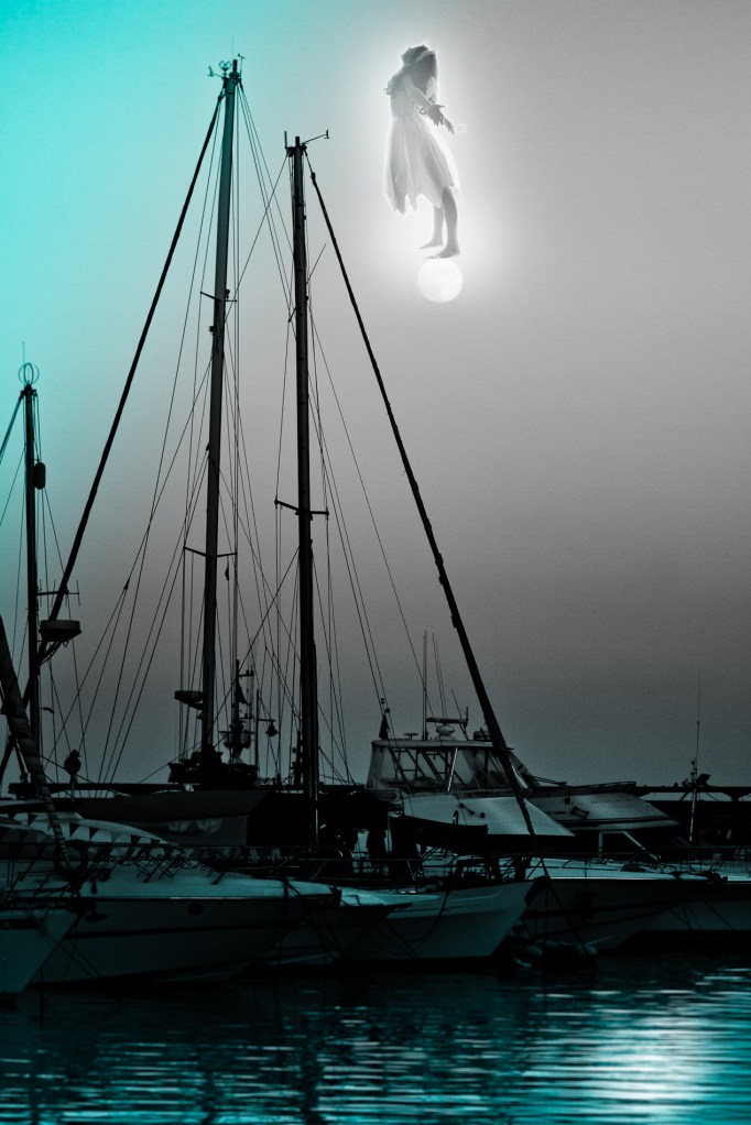 [caption id="attachment_1013" align="aligncenter" width="682" caption="sail me away"][/caption] If I were to imagine a perfect place where I long to be when the world gets too noisy, and if I were to give it a color, it would most certainly be blue. Blue is soothing, calming, quiet, swirling, cooling, peaceful, deep, gentle... Yes, that is where I would dream of sailing, into the blue photo: composite of 2 photos: sailboats in Andalusia and Lea the little fairy