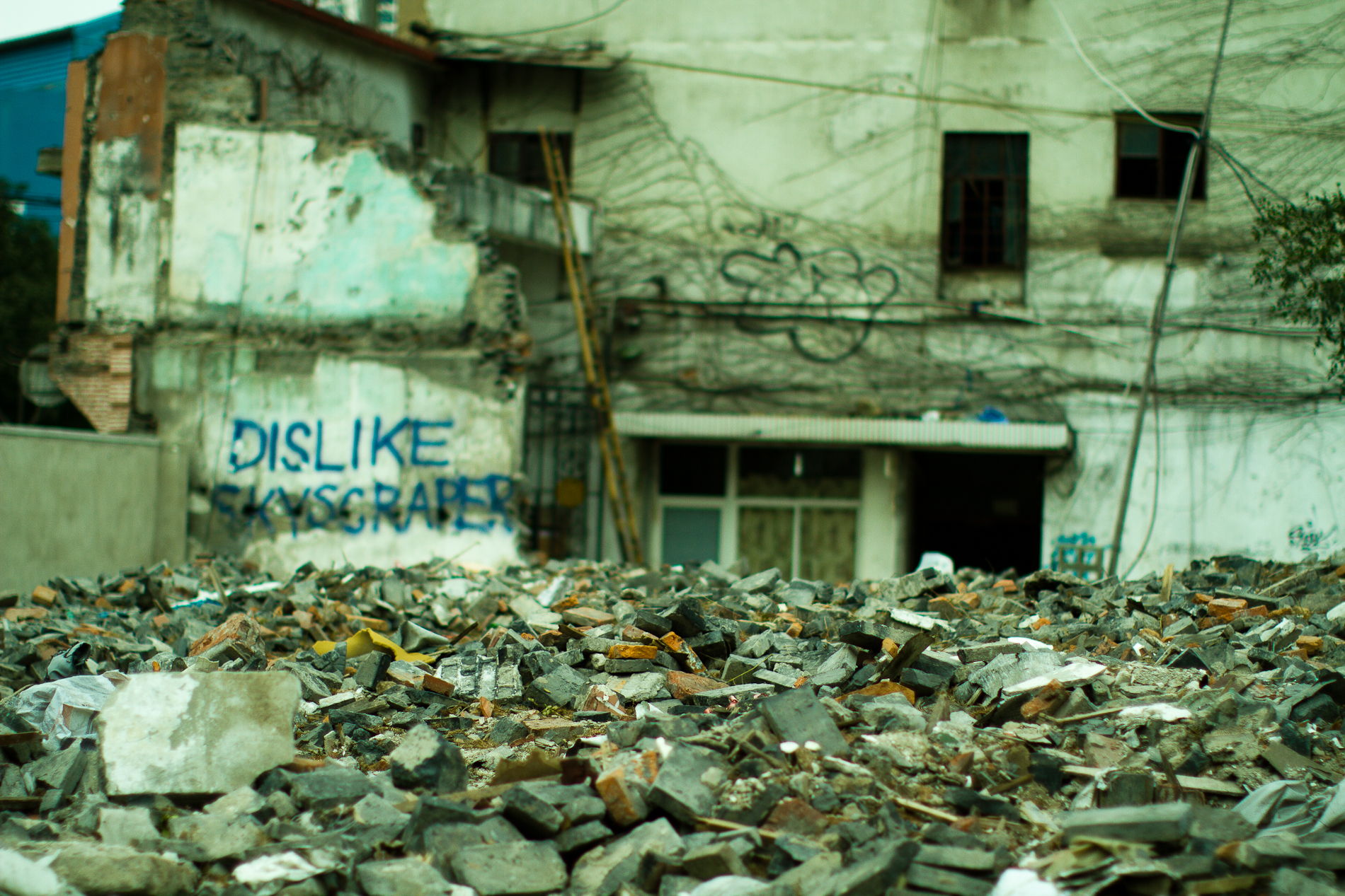 [caption id="attachment_1526" align="aligncenter" width="1024" caption="nothing left to say"][/caption] You can see it every day in this city, a new demolitions site, another traditional neighborhood condemned to destruction and giving way to the race for a future city of sky scrapers. Imagine having to pack up all your belongings on a whim and move to a new world with no history, no character and no choice. Nothing left to say...
