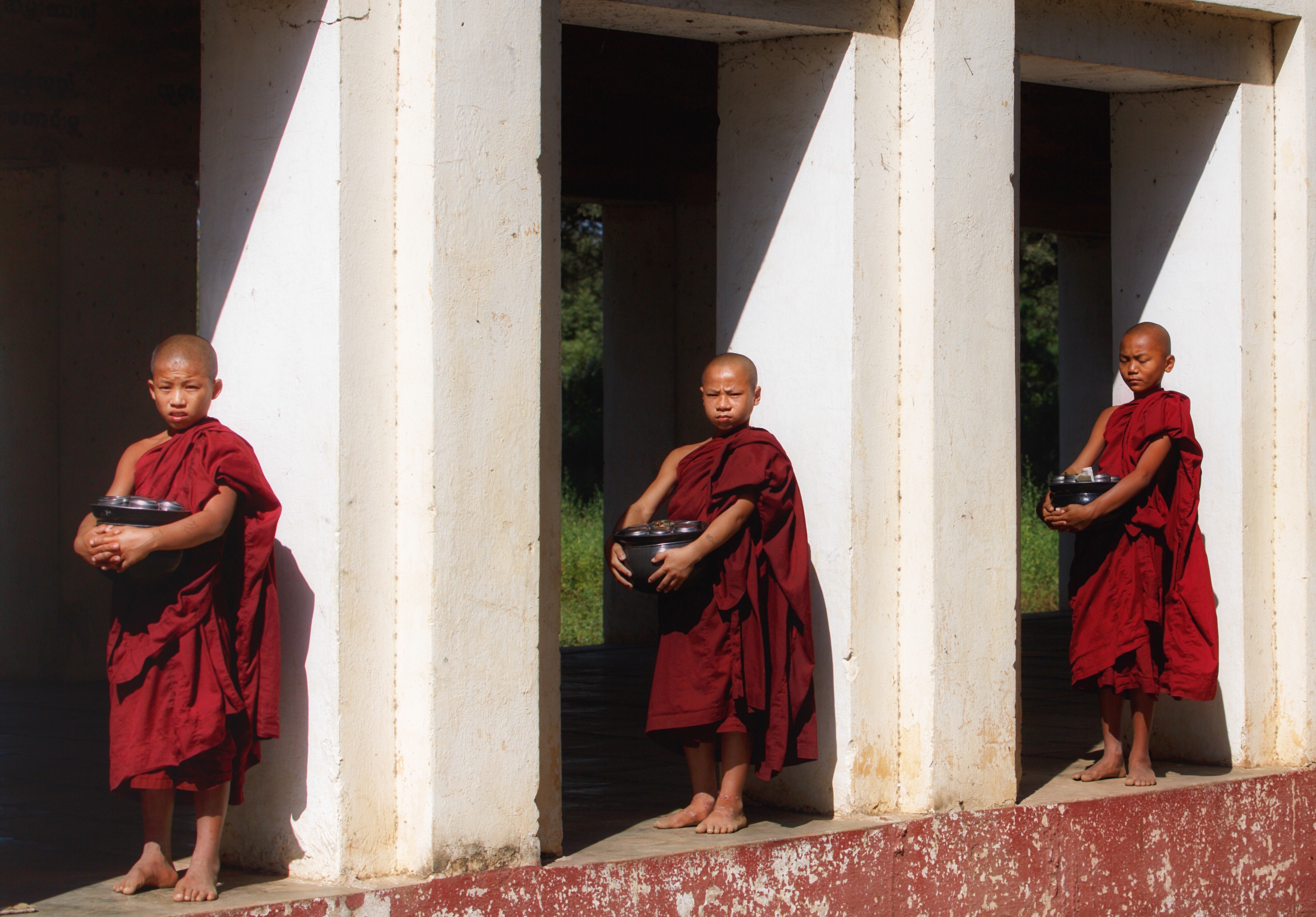 Imagine stacking all your belongings, your clothes, books, electronics, furniture, house, car, pictures, everything and setting it on fire. Then imagine owning a robe, a bowl for food, a simple bed and a toothbrush. How might that feel? It's incredible how attached we get to our 'things' and how much simpler and lighter life would be with less things. Nowadays though some monks I met had iPhones :) and they labeled them their 6th and final belonging. That's how powerful a role the media plays on our lives. Day 91 of 365~ Monks in bagan~ Myanmar