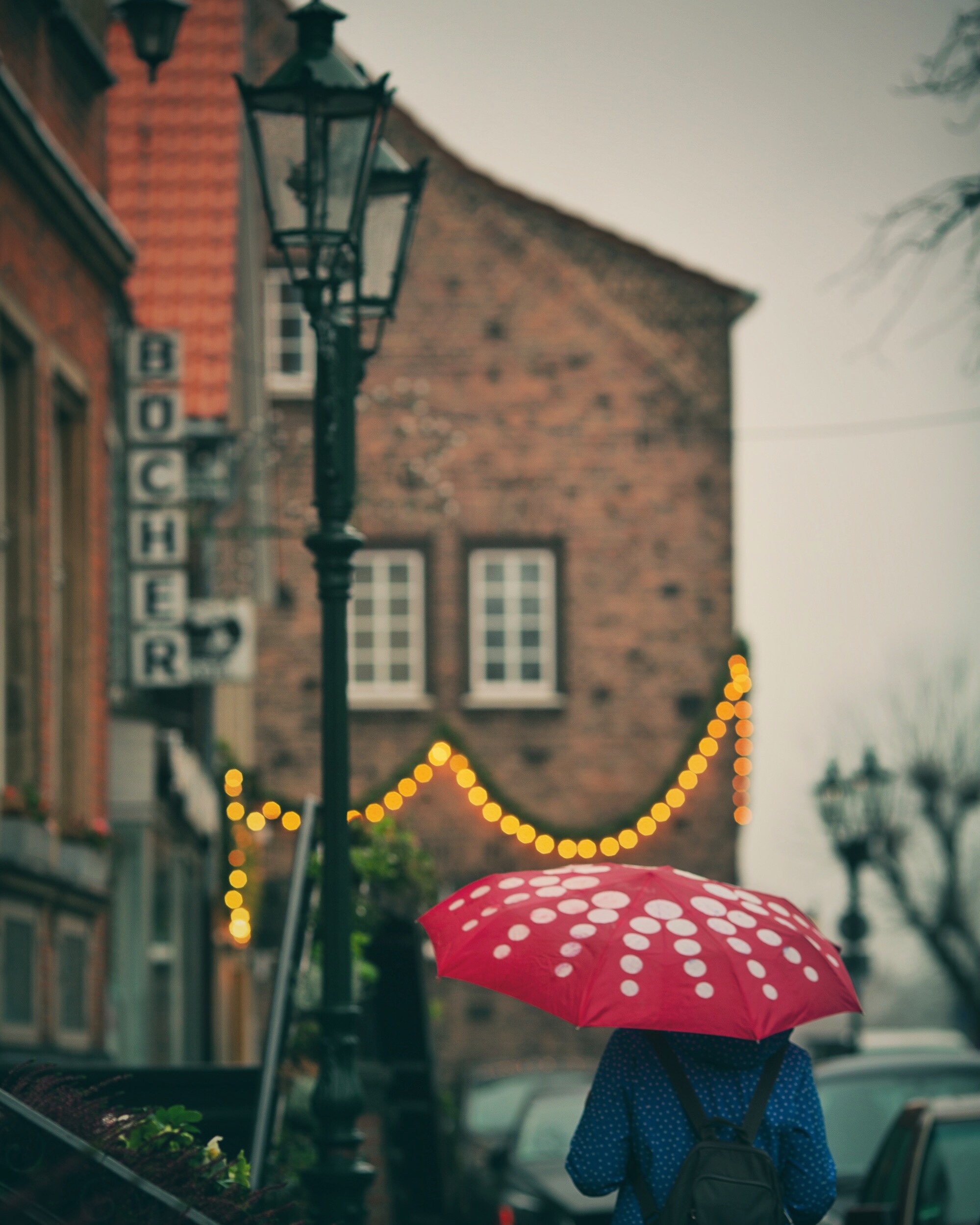 There is a charm that can only be captured on a rainy day and a mood particular to that atmosphere of chilly raindrops, umbrellas and leaves blowing in the wind that I always long to photograph. It's visual poetry that turns gloom into romance and magnifies the bit of light the day has against the dark background. I wouldn't hide my camera from the rain, no, I would always choose to join it. And don't get me started on reflections...