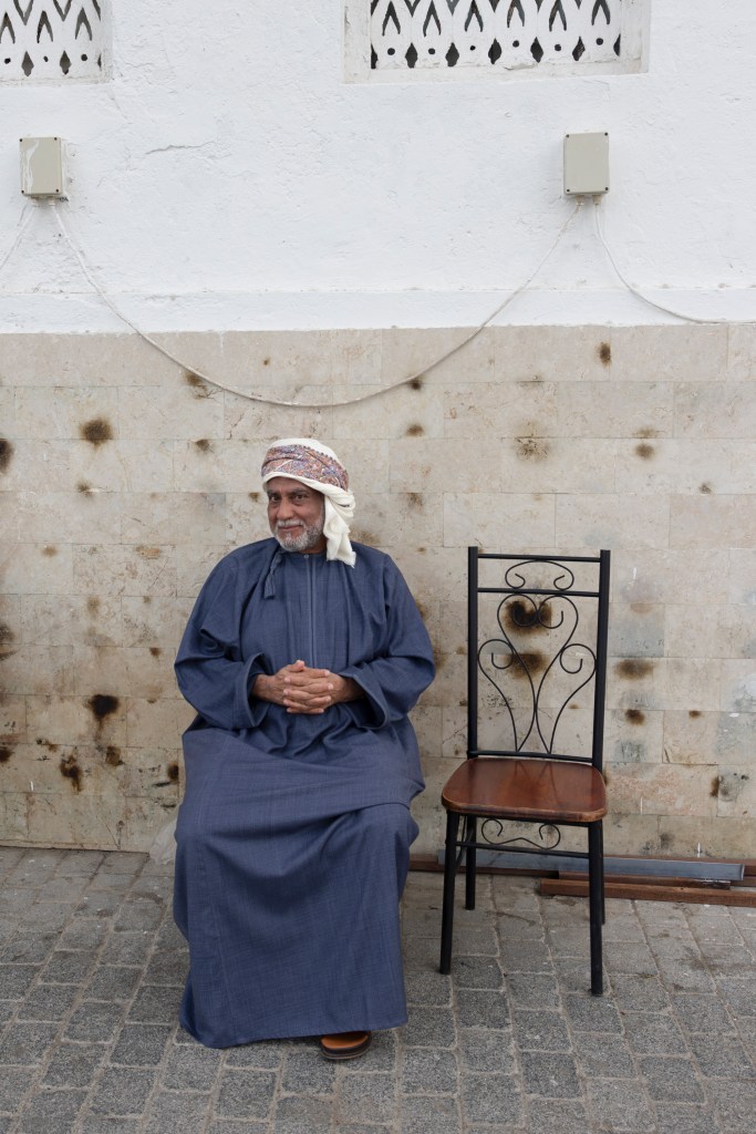 In another corner of the city, a craftsman smiles, immersed in his work amidst the organized chaos of his workshop. His tools and surroundings tell their own stories, but his warmth draws you in, speaking to the pride and joy of creation. Outside, an older man rests by a weathered wall, his quiet demeanor framed by the simplicity of a nearby chair. In Muscat, the harmony between people and their spaces feels almost poetic, reflecting the openness of Omani culture. Street photography isn’t just about capturing an image; it’s about the shared essence of being human. Oman, with its welcoming spirit, bridges gaps and invites connection – a reminder that no matter where we travel, we’re all part of the same world.