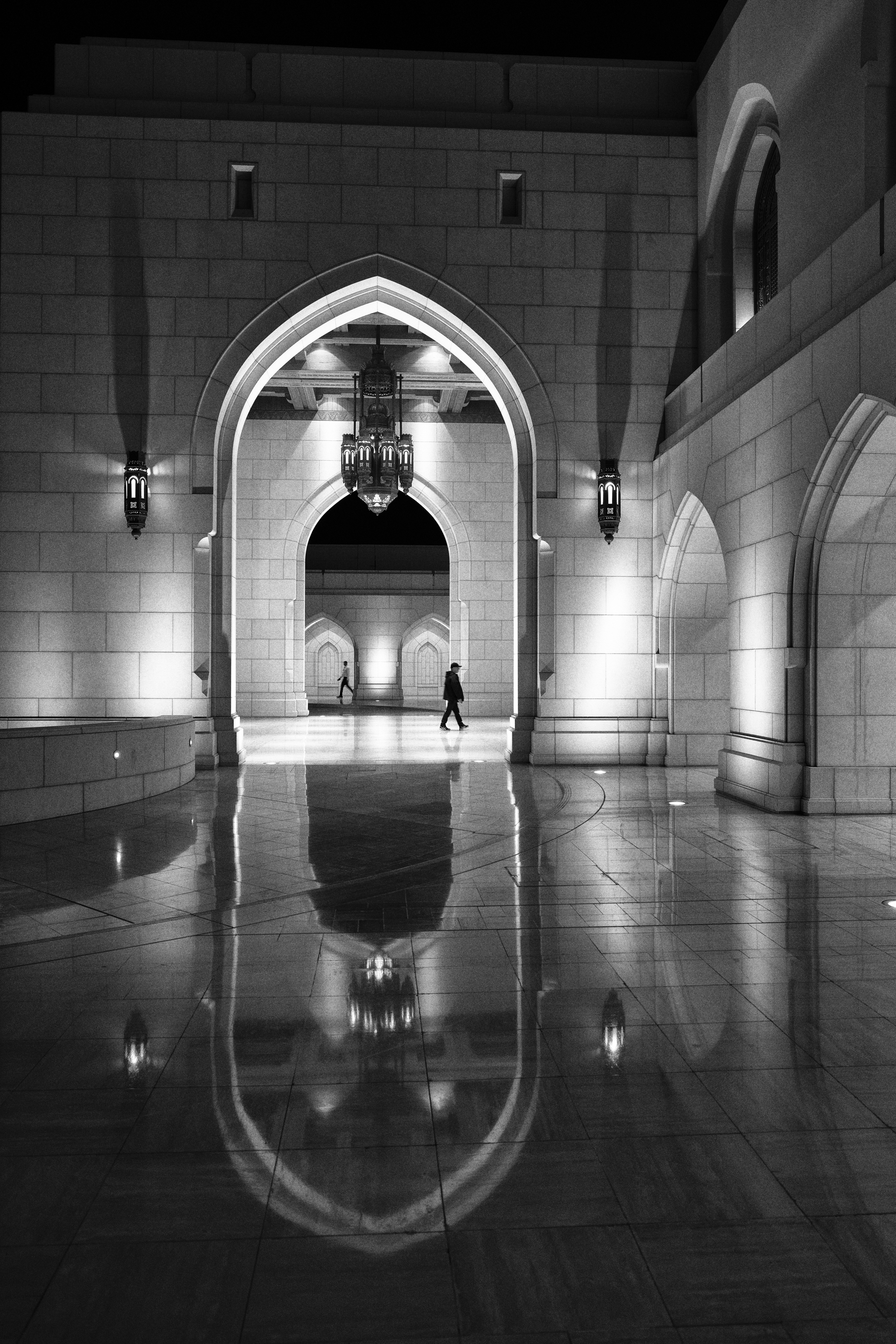 There is a certain magic that comes alive when the human presence enters the frame of a photograph. It is as if the image transforms from a static depiction of place to a living, breathing moment. This connection between humanity and architecture, light, or space adds layers of meaning. In these images, the lone figures traversing grand arches and polished floors of the Royal Opera House in Muscat, Oman, are more than subjects; they become storytellers, inviting me into a narrative of stillness, movement, and contemplation. Their small forms in the vastness of intricate design remind me of my place in the grand scheme of things—both delicate and significant.