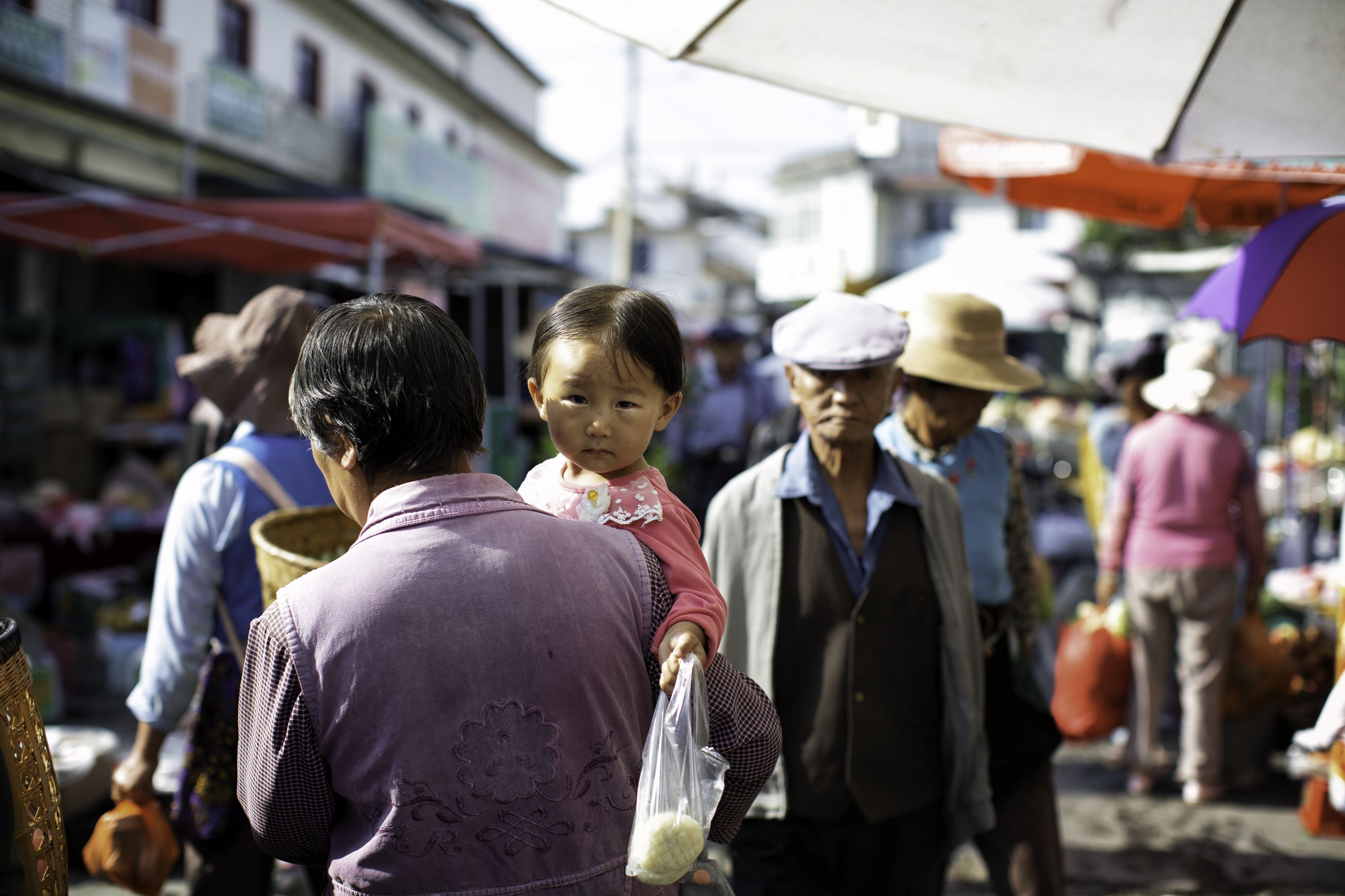 This image takes me back to Dali, China, in 2015. A busy market, filled with voices, movement, the scent of fresh produce and spices mixing in the air. And amidst it all, this child, perched on a woman’s back, watching the world with eyes that seem to hold an ancient knowing. A single moment in time, frozen in my lens, yet alive in my memory. The market bustles around her, but she is still, observing. I wonder, what did she see in me? Did she sense the connection I felt, the curiosity, the silent acknowledgment that we are all part of this vast, shared existence?