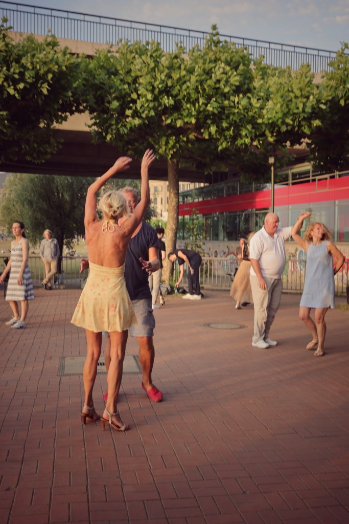 There was something grounding in the simplicity. No stage, no lights, no audience. Just strangers turning into pairs, letting the music guide them. Some danced tightly together, others let the music drift through them freely. In those steps, under the fading sun, it felt like the city itself was exhaling.